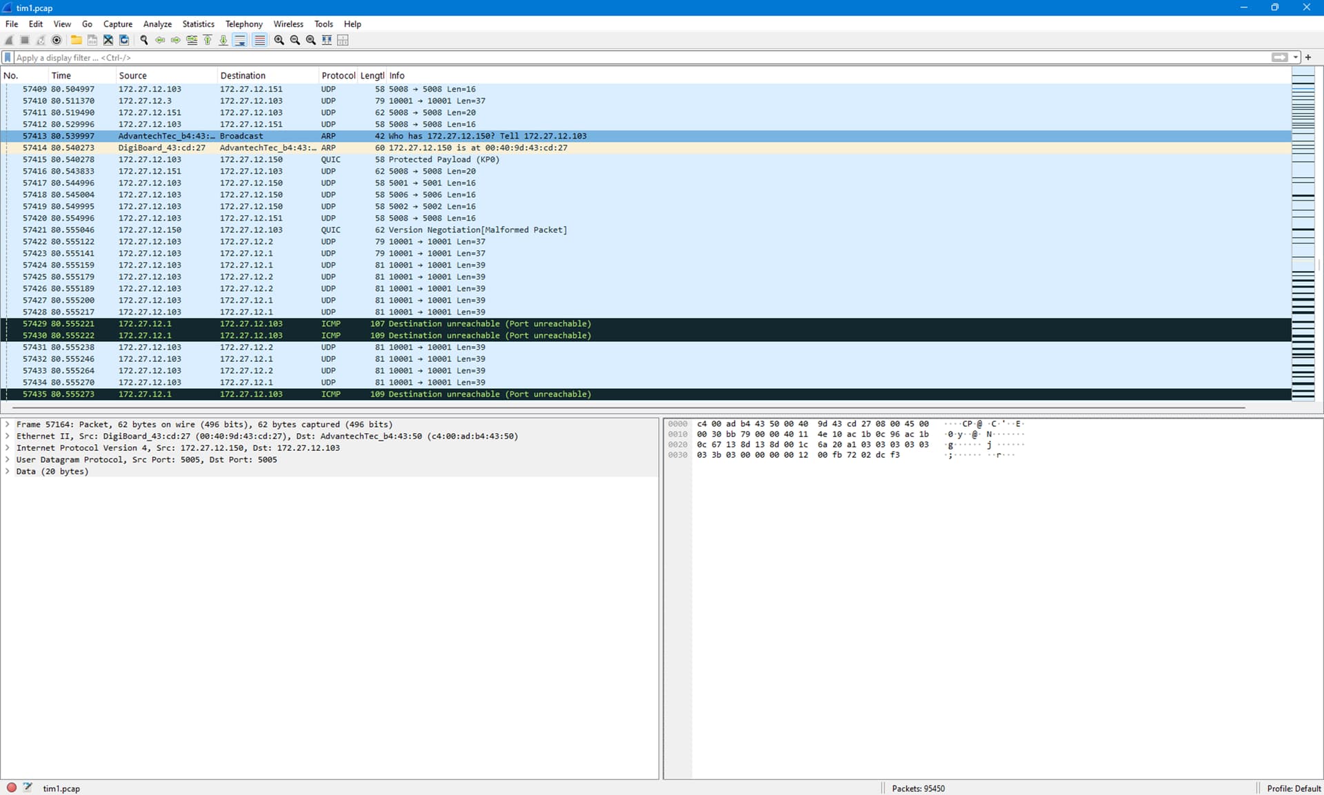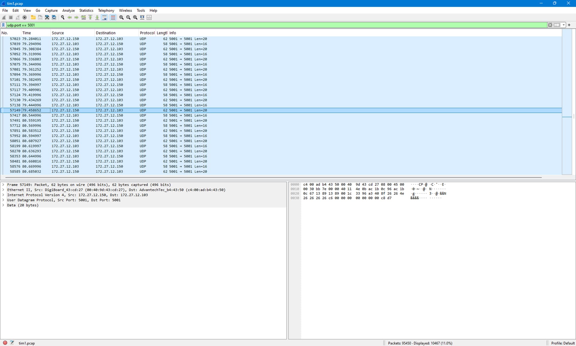 We are having a strange network issue on one of our systems in the field. Every 20 minutes or so we’ll get a brief drop out to a serial to Ethernet device we regularly get data from (every 25 or so milliseconds). Our systems have multiple of these serial to Ethernet devices but the drop out only happens to one of them. We’ve already replaced the device with a spare but the problem persists.